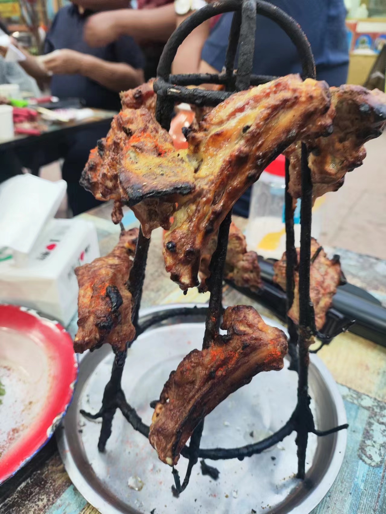 艾尼纯羊烤肉的架子肉,油滋滋冒着热气,再放些微辣孜然,实在是太好吃了,但是注意不要太久放凉,味道会差很多。