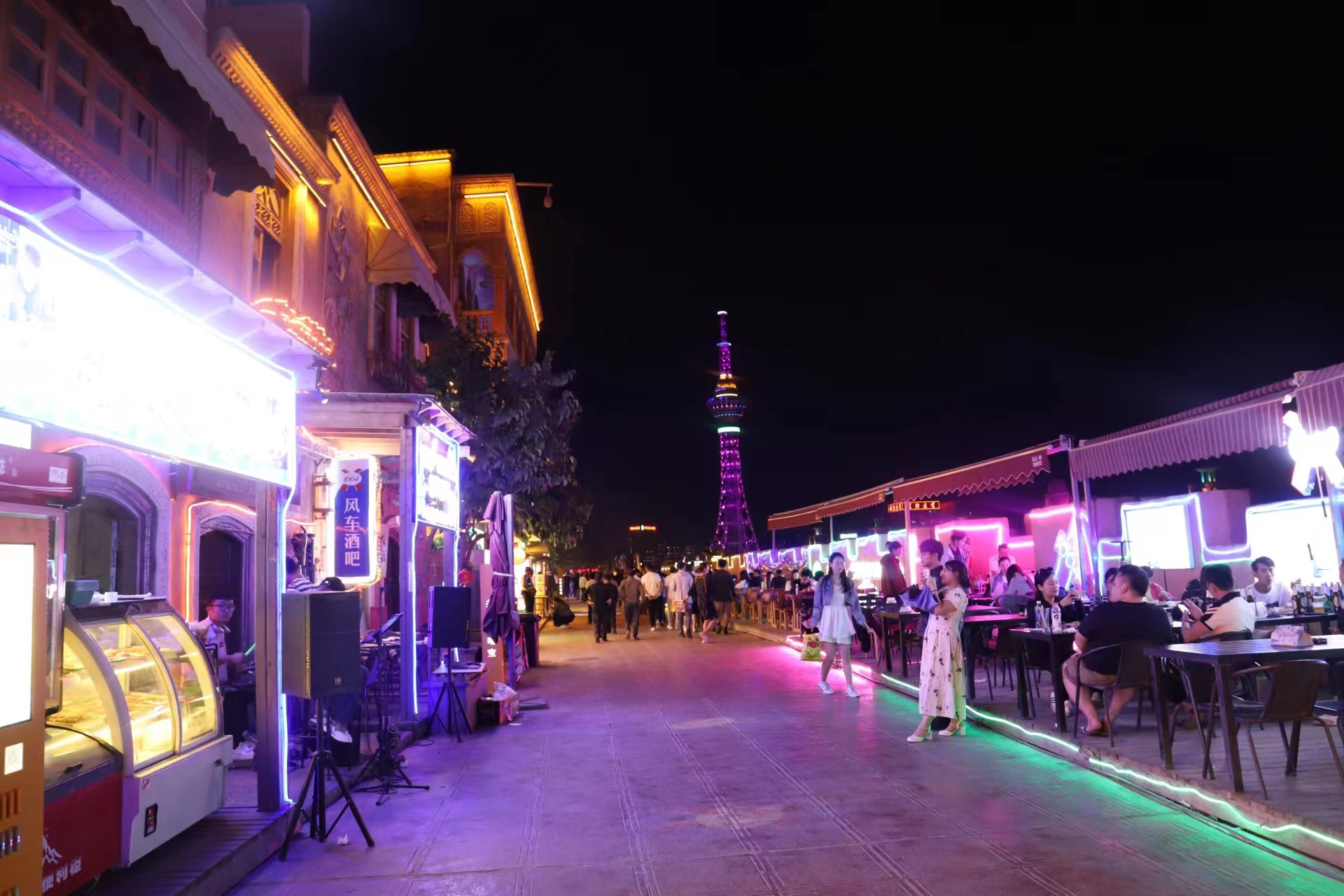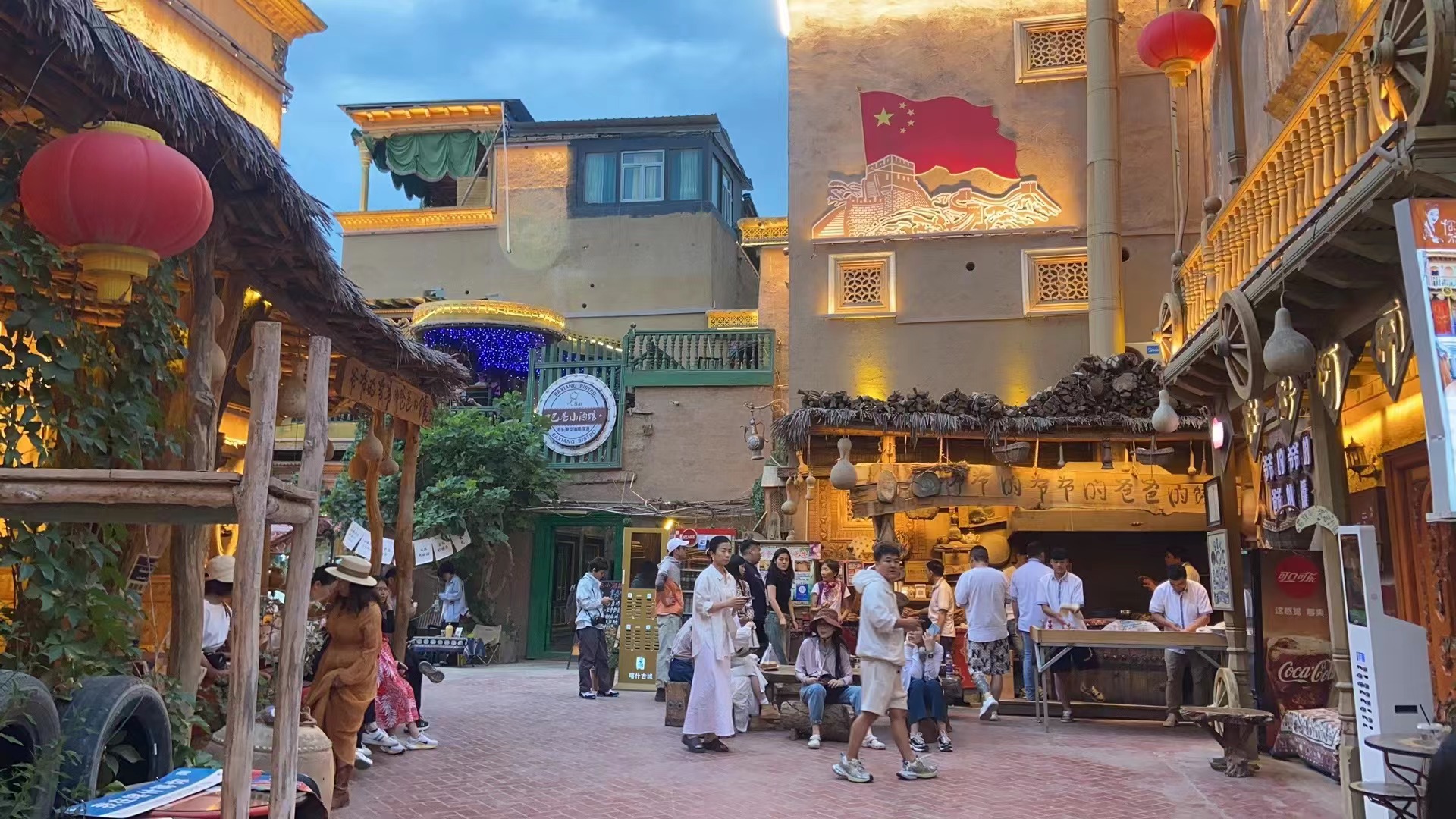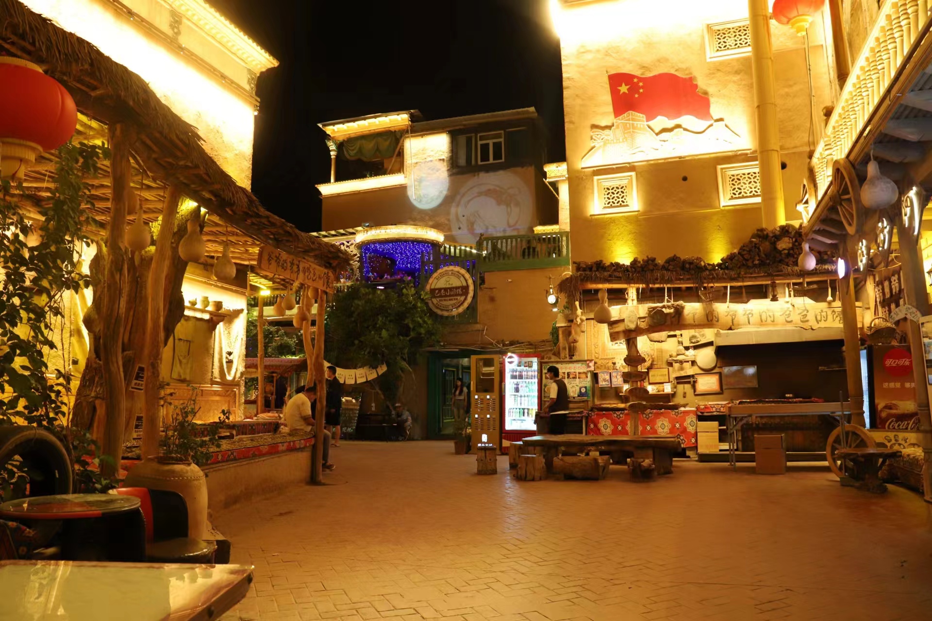 喀什晚上10点半以后天才黑,夜幕降下,暖黄的灯光涌起,甚是复古温馨。